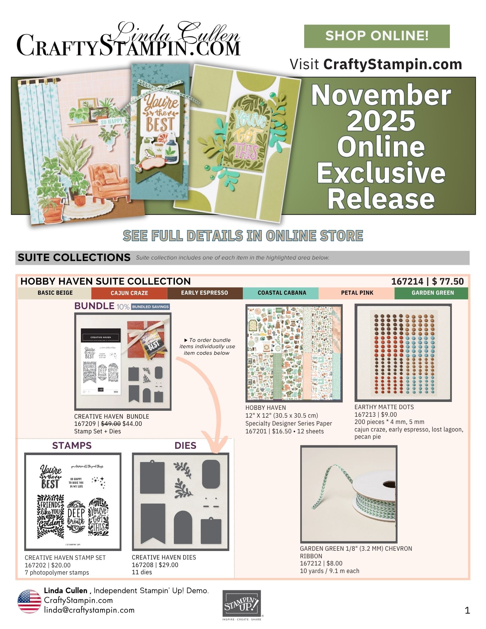 All new November 25 Online Exclusives are now available for everyone to purchase. I’ve created a ‘cheat sheet’ to help while making your shopping list. You can easily see which products are part of a bundle and which are part of a suite. You can view it as images and download it below.
