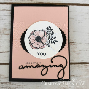 I loved the color palette and design on the Amazing You card done in Calypso Coral, Black and White. Pretty design with paper selected and used!