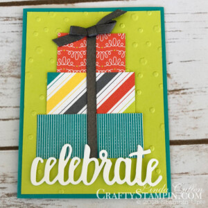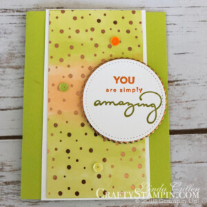 This is the last week for Stampin’ Up!’s 2018 Sale-a-bration.  The Amazing You stamp set and Celebrate You Thinlits are two of my favorite…..I knew I had to have the thinlits as soon as I saw them.  This card also includes the Sale-a-bration Bubble and Fizz DSP.