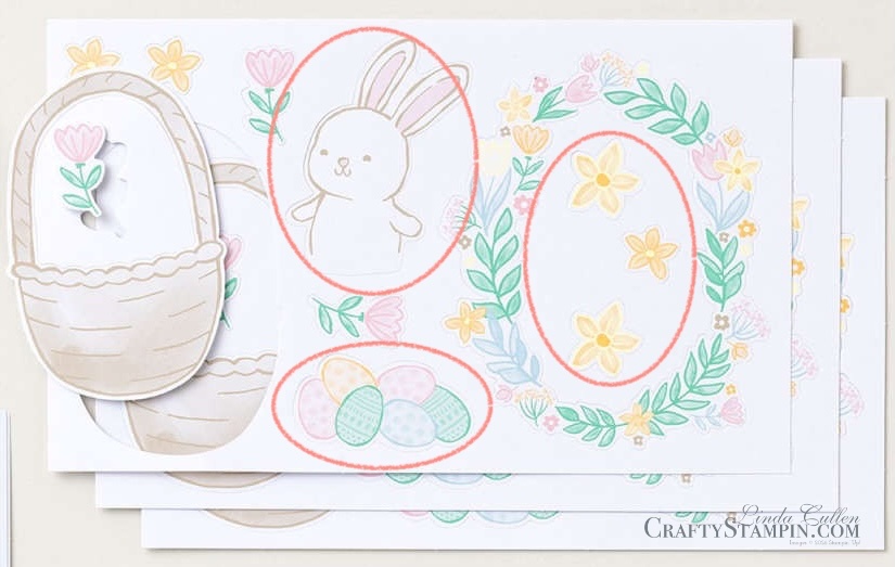 For this first alternative, I started with a Crumb Cake card base and stamped the top half with the kit’s egg images in Crumb Cake ink. I love tone-on-tone stamping like this; it adds interest without getting busy.