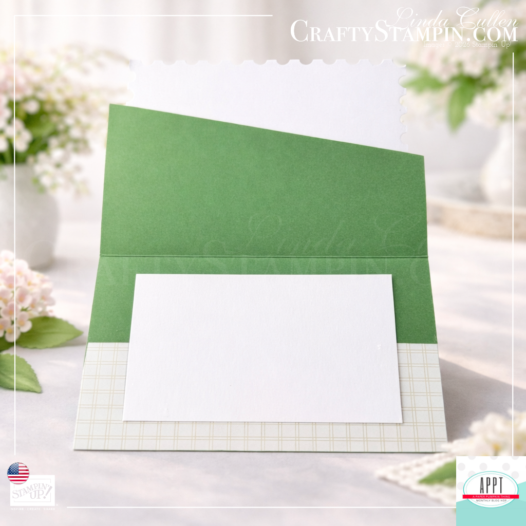 Inside the card, I used the green envelope again as the Designer Series Paper panel, because I clearly had a theme and I was committed. 😉