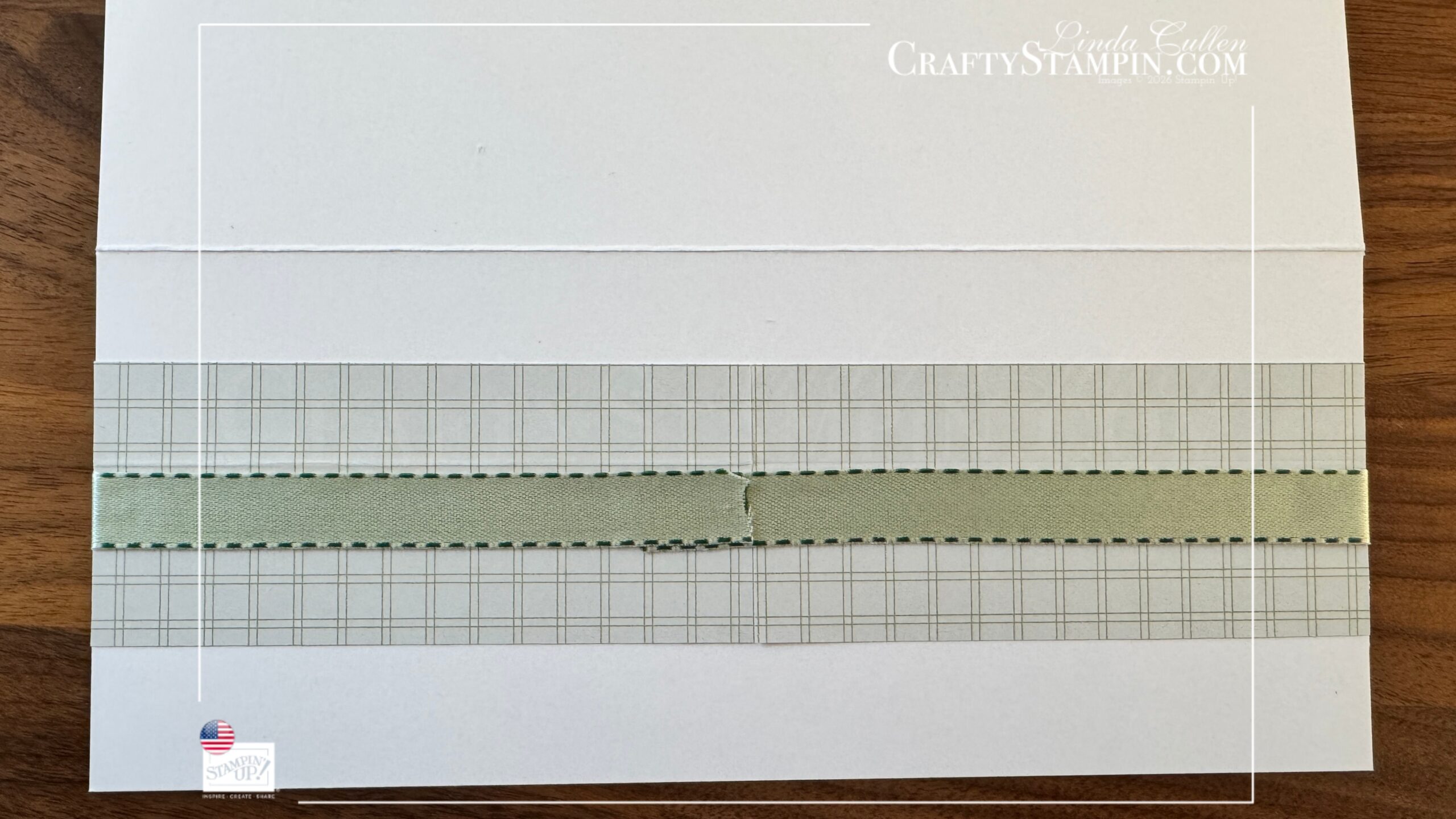 For the ribbon, I wrapped Shaded Spruce and Soft Sea Foam Ribbon around the card, but left a small break in the front center. That gap gets hidden behind one of the Perennial Postage die cuts, so it looks neat and intentional. We love an intentional moment.