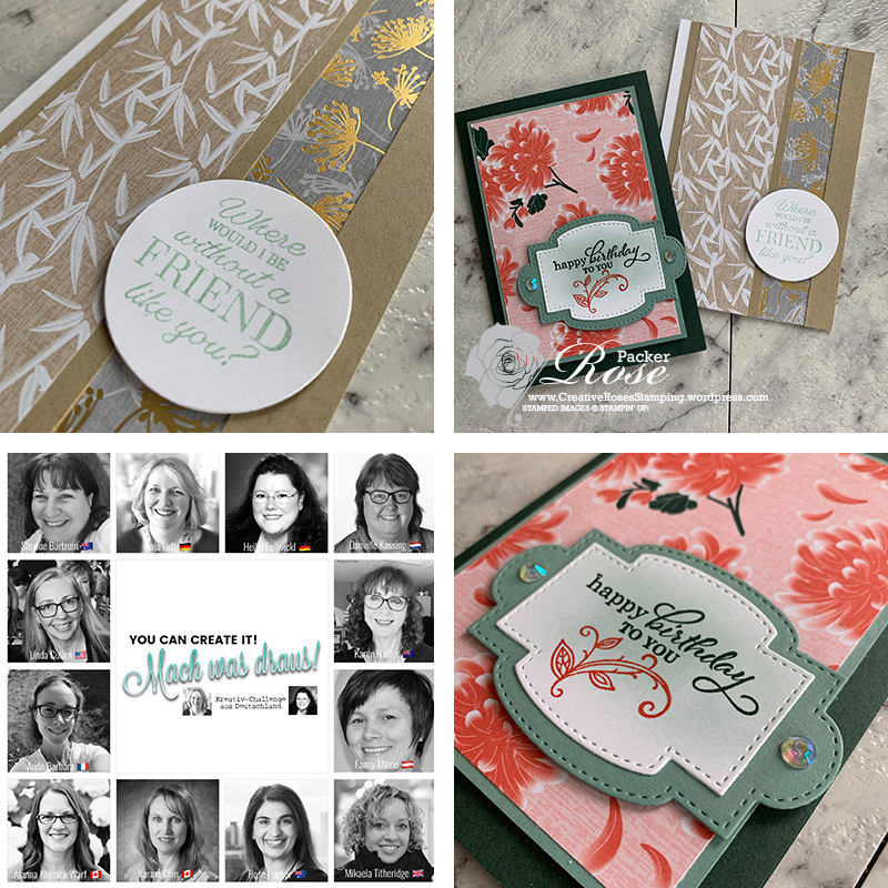 I’m so excited to be part of the international “You Can Create It!” group of Stampin’ Up! demonstrators. The group was started by German demonstrators Anja Luft and Heike Fallwickl as a challenge to see what different and beautiful projects can be created from the same list of just a few materials.