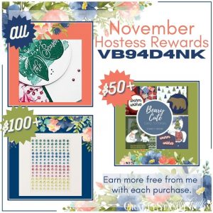 Hostess Code: M7WZWNGU I have some great October 2024 Customer Sales Specials for every order placed before October 31st!!! Order between $0 - $149 must use the hostess code: M7WZWNGU All orders will receive the Changing Leaves Card Tutorial*. Orders over $25 will also receive one Frequent Buyer ...