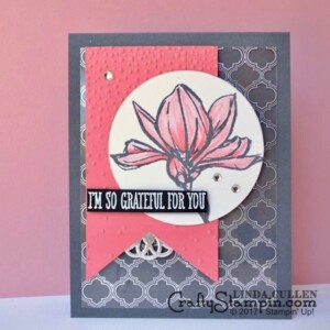 Today’s project is a sneak peek of what my VIP Stamp Club Member receive. My card features several retiring Stampin Up projects – that are currently still in stock….but don’t wait long, products are selling out!