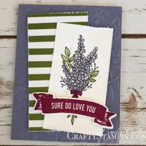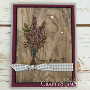 Lots of Lavender in Berry Burst | Stampin Up Demonstrator Linda Cullen | Crafty Stampin’ | Purchase your Stampin’ Up Supplies | Lots of Lavender Stamp Set | Petal Passion Designer Series Paper | Berry Burst Metallic Edge Ribbon