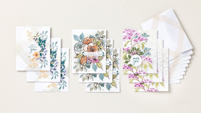 Continue making gorgeous floral cards for your favorite people with the Full of Charm Paper Pumpkin Refill. This crafting kit includes three different printed card base designs with gold foil, coordinating foiled envelopes, precut paper pieces, and gem embellishments. With intricate watercolor florals and eye-catching gold accents, these cards have an elegant feel to make any recipient feel truly special.