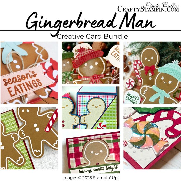 7 card and treat tutorials with step-by-step instructions featuring the Stampin’ Up! Gingerbread Man Bundle and coordinating products.