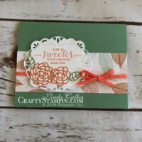 Sign up for my weekly newsletter and receive inspiration right to your inbox.  You’ll receive Free Card Tutorials available only to my newsletter subscribers, the latest Stampin Up News, including specials and inspiration, and my Crafty Stampin’ Monthly Customer Appreciation Bonuses.  And don’t worry, your email will never be shared with anyone else, and you can opt out at any time.