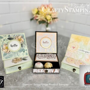 Welcome back for part 2 of the Stampin’ Scoop show featuring the Stampin’ Up! Online Exclusives with lots of Hello, Irresistible Collection samples. Stampin’ Up’s just dropped a new line of “Online Exclusive” products. Tami and I shared a sampling of them in our pre-order haul last month but now we’re able to share them all! And in addition to the hot new stuff, we have tons of ideas made with them, a hot new giveaway AND we’ll be sharing how to make an Easel Drawer Fun Fold card.