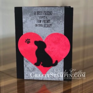 Happy Tails - Paw Prints on your Heart | Stampin Up Demonstrator Linda Cullen | Crafty Stampin’ | Purchase your Stampin’ Up Supplies | Happy Tails Stamp Set | Dog Builder Punch | Be Mine Stitched Framelits | Stamparatus | Starburst Punch