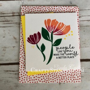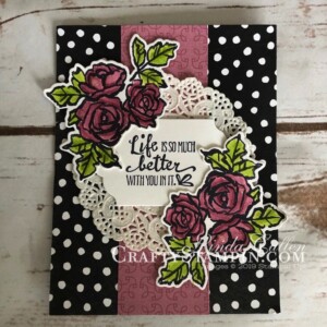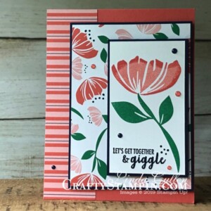 Sign up for my weekly newsletter and receive inspiration right to your inbox.  You’ll receive Free Card Tutorials available only to my newsletter subscribers, the latest Stampin Up News, including specials and inspiration, and my Crafty Stampin’ Monthly Customer Appreciation Bonuses.  And don’t worry, your email will never be shared with anyone else, and you can opt out at any time.