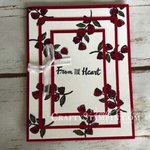 Sign up for my newsletter and receive inspiration right to your inbox.  You’ll receive Free Card Tutorials available only to my newsletter subscribers, the latest Stampin Up News, including specials and inspiration, and my Crafty Stampin’ Monthly Customer Appreciation Bonuses.  And don’t worry, your email will never be shared with anyone else, and you can opt out at any time.