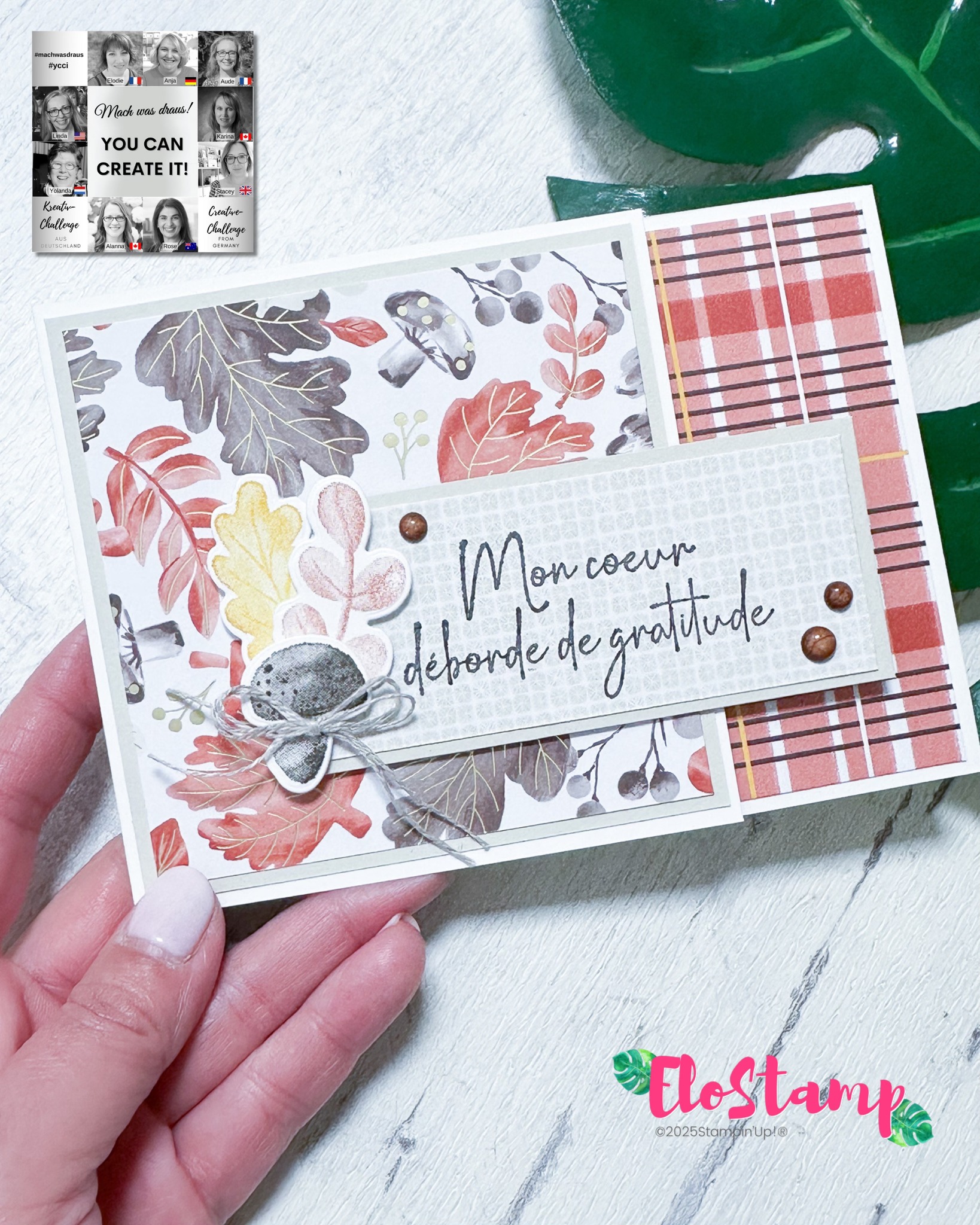 I’m thrilled to share my project for this month’s You Can Create It (YCCI) international design challenge! This fun, global Stampin’ Up!® collaboration, founded by the talented German demonstrators Anja Luft and Heike Fallwickl, encourages crafters everywhere to stretch their creativity with just a limited set of supplies. It’s always amazing to see how many unique projects can come from the same materials!
