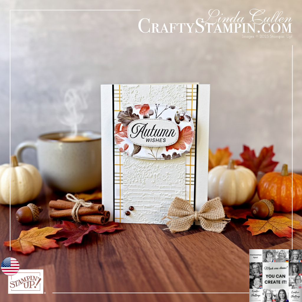 Happy fall, y’all! I built my card around the Gathering Together Specialty DSP and stretched the Basic Beige panel to cover multiple layers.